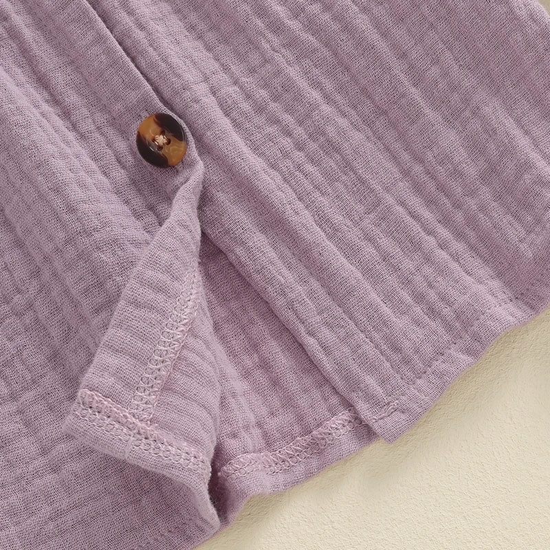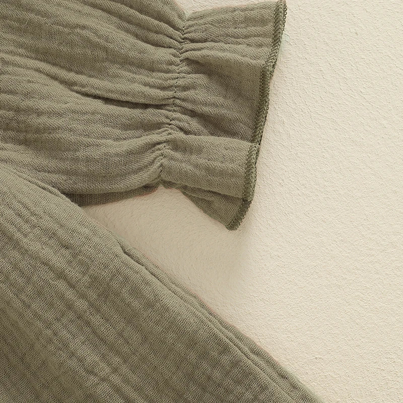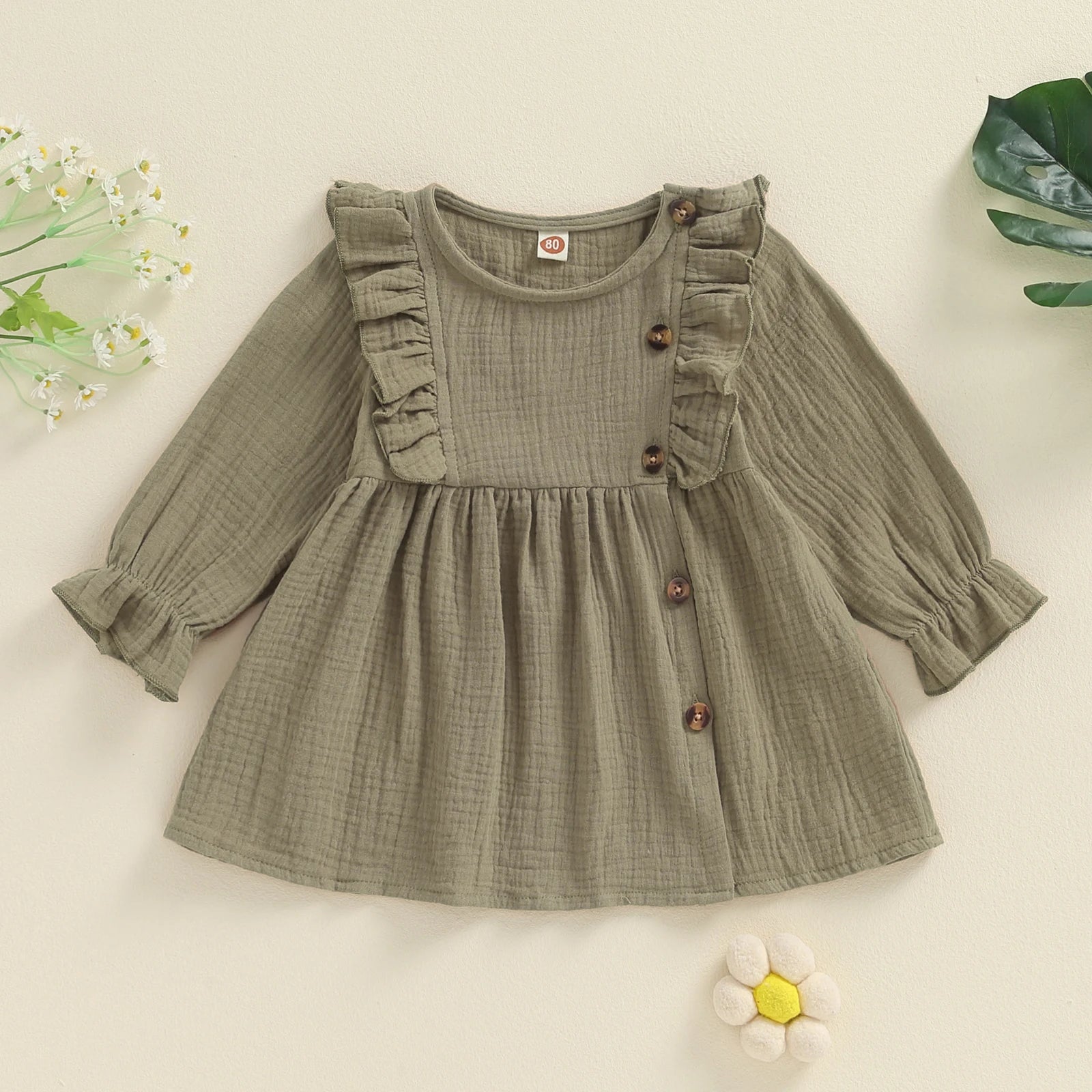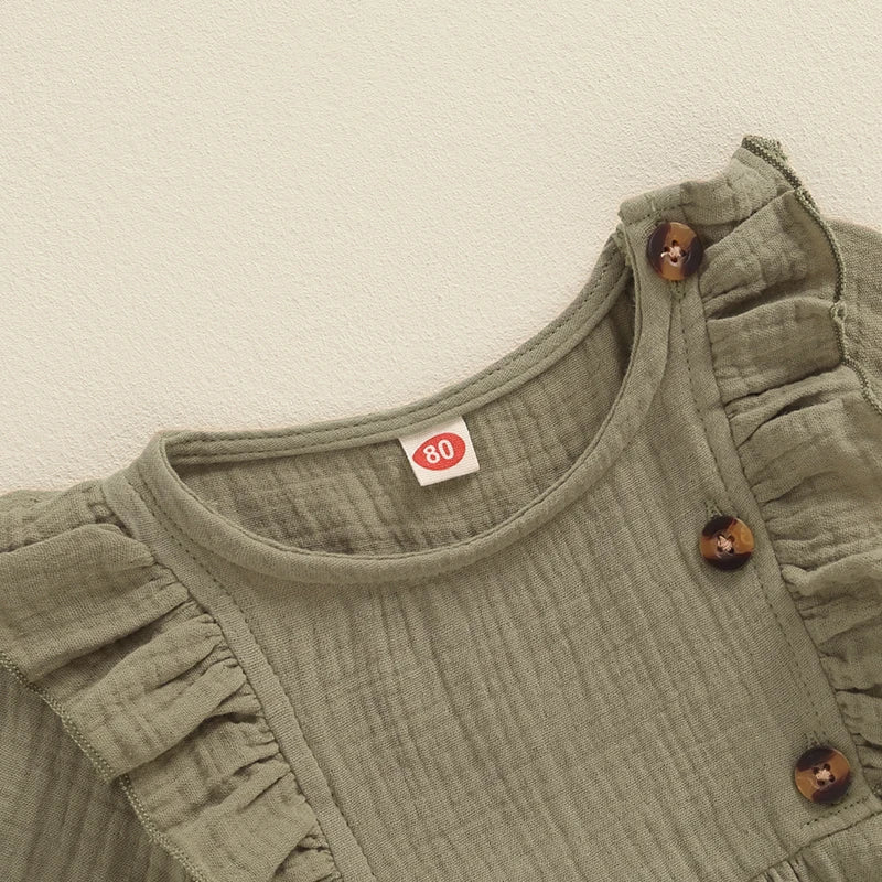 Girls Ruffle Shoulder Button Dress